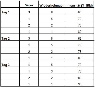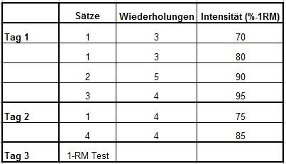 - Die genaue Ermittlung der individuellen 1-RM via Maximalkrafttest.